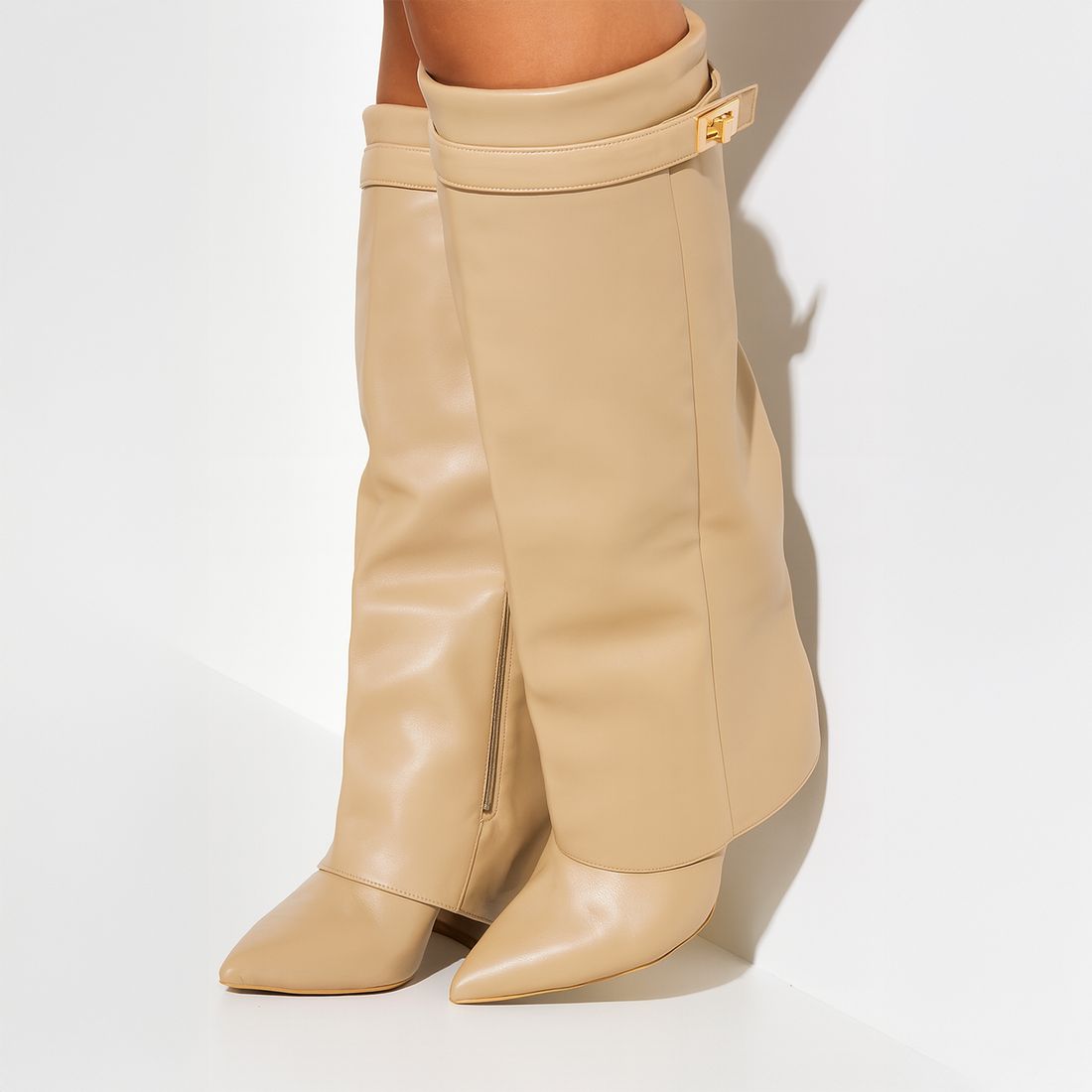 ✨Ein Over-Stiefel, der jeden Schritt erhellt: goldene Details, kostbare Weichheit und eine Eleganz, die feminine und moderne Looks sanft umhüllt.✨